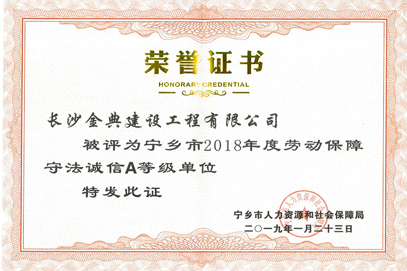 2018年度劳动保障守法诚信A等级单位