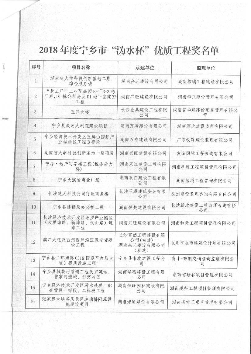 关于宁乡市第二届“沩水杯”优质工程奖评选结果的表彰通报